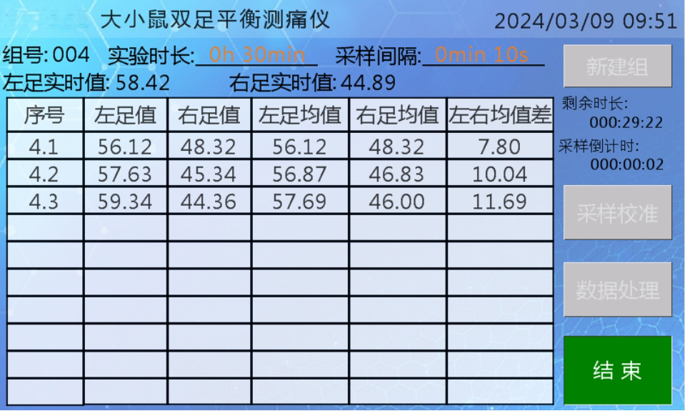 雙足平衡測試儀是通過大鼠、小鼠自身的平衡調(diào)節(jié)來評估疼痛程度的方法。動物的雙腳分別著力于兩塊不同的測重板上,正常鼠會將體重平衡分配到兩只腳上,兩個測重板的數(shù)據(jù)差值很小;如果其中一只腳存在發(fā)炎、病變或神經(jīng)疼痛,根據(jù)嚴(yán)重程度,老鼠會自發(fā)地將體重轉(zhuǎn)移到另外一只腳上,導(dǎo)致兩塊測重板的重量出現(xiàn)相應(yīng)的差值。該方法在藥篩和安評中被廣泛應(yīng)用。